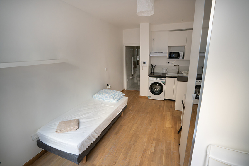 AUP Université is a new residence, designed to offer students a mix of single studios, single one-bedroom apartments, and cozy co-living apartments with single rooms. Located in the 7th arrondissement in the heart of AUP’s academic campus, the residence is connected to the new Université administrative building.