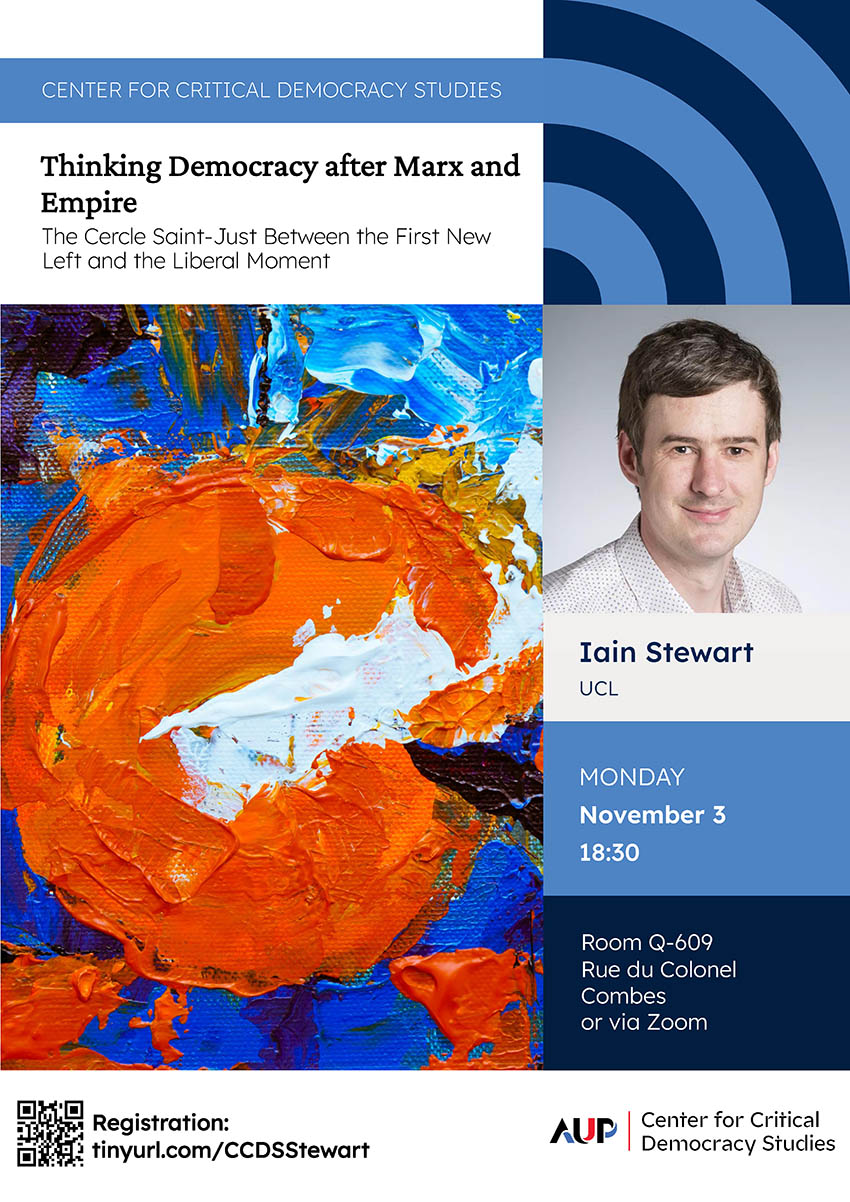 This talk examines how decolonization informed the development of a new democratic theory at the end of the Algerian War, with far-reaching consequences for intellectual politics in France and beyond during the final decades of the twentieth century. It is based on a case study of the Cercle Saint-Just, a political discussion group whose meetings between 1963 and 1966 on the theme of democracy were attended by leading figures from the Parti Socialiste Unifié (PSU), the Confédération française démocratique du travail, and leftist intellectuals previously associated with the groups Arguments and Socialisme ou Barbarie. By studying this group’s origins, the talk firstly offers a new perspective on the history of the French new left, that of an explicitly “liberal new left” in which anti-colonialism culminated not in “third wordlist” neo-Marxism but a post-Marxist democratic theory. Liberalism was soon abandoned as an explicit identity amidst the ideological reshuffling which accompanied the establishment of the PSU. But this new left was nevertheless increasingly deeply influenced by a then half-forgotten French liberal tradition which the Cercle Saint-Just rehabilitated for a post-Marxist left amidst intense controversy over the identity and orientation of the PSU after the Algerian War. By recovering this history, the talk also casts new light on the origins of a phenomenon usually seen as beginning in the mid-1970s, France’s “liberal moment,” offering a new explanation for its complicated relationship with the history of empire.
