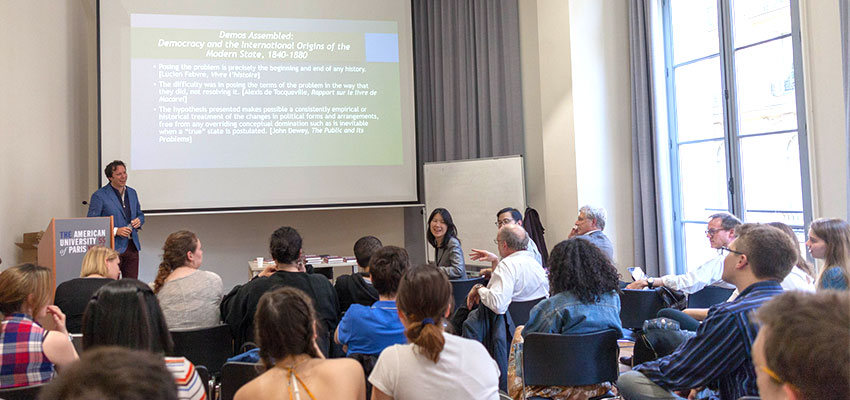 On Tuesday, April 17th the AUP History Department hosted an event to celebrate the publication and release of department head Stephen Sawyer’s new book, Demos Assembled: Democracy and the International Origins of the Modern State. The room was packed with AUP faculty and staff, current and former students, professors from other universities as well as President Schenk and Interim Provost Hank Kreuzman. Some came to discuss the new approach to understanding the formation of modern democracy that Professor Sawyer proposes in his work while others came to learn about Sawyer’s work and to congratulate their favorite professor on his publication.